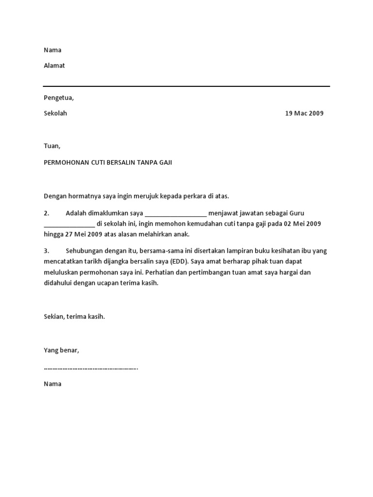 Permohonan Cuti Bersalin Tanpa Gaji Pdf